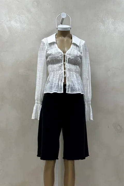 Bermuda de calce wide, tiro alto. Lavado negro con desgaste. Con ruedo al corte, desflecado. Confeccionado en bull denim rígido, 100% algodón. Producto fabricado en Argentina.