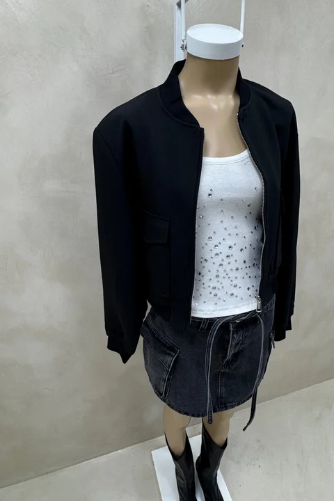 Campera bomber con bolsillos en el delatero.