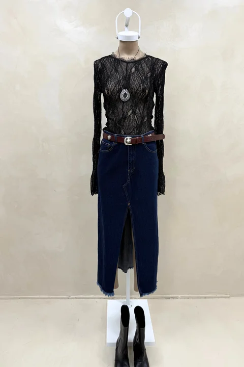 Falda larga con abertura en centro delantero.