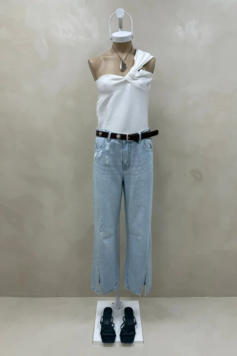 Con pinzas en altura de rodillas y tajo en el delantero.